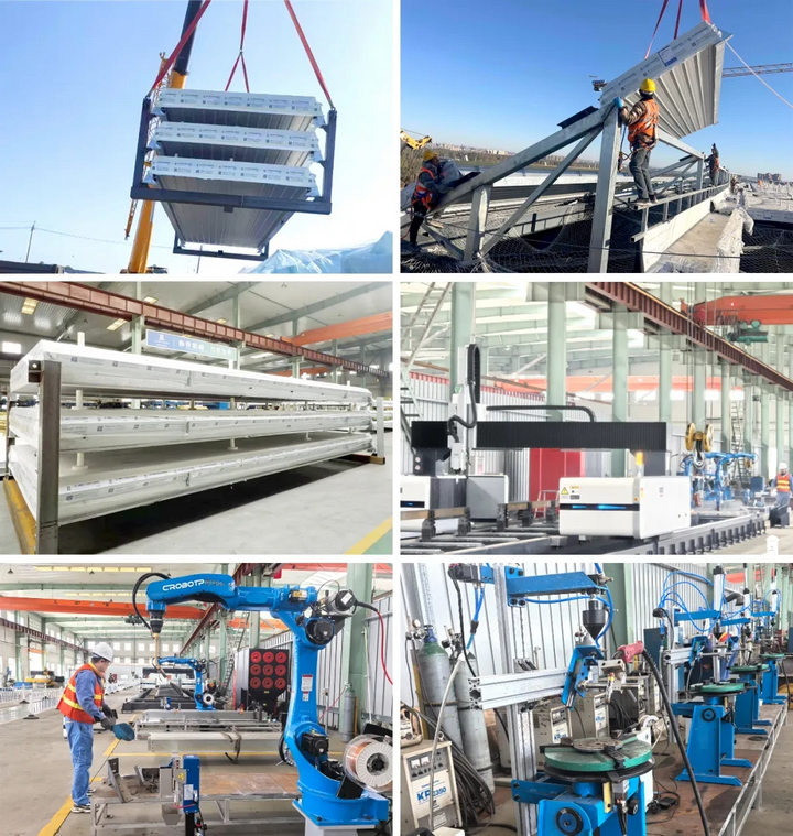 2025 年 8 月 15 日主體結(jié)構(gòu)穩(wěn)定后,786 塊屋面單元、140 塊天溝單元需在 78 天雨季內(nèi)完工。三新的智能車間里,意大利薩瓦尼尼沖剪中心與瑞士激光切割機(jī)晝夜運(yùn)轉(zhuǎn),將板塊拆解為上萬個(gè)零件精準(zhǔn)預(yù)制;施工現(xiàn)場(chǎng),全站儀密集打點(diǎn)校準(zhǔn)三維坐標(biāo),塔吊將 9m×3.5m 的超寬板塊穩(wěn)穩(wěn)吊裝,專職安全員拉起的警戒線守護(hù)著 38.4 米高空的 “零事故” 底線。更令人驚嘆的是,針對(duì)非塔吊覆蓋區(qū)的 11 塊天溝,技術(shù)組創(chuàng)新采用分段吊裝工藝,讓 “不可能” 變成現(xiàn)實(shí)。